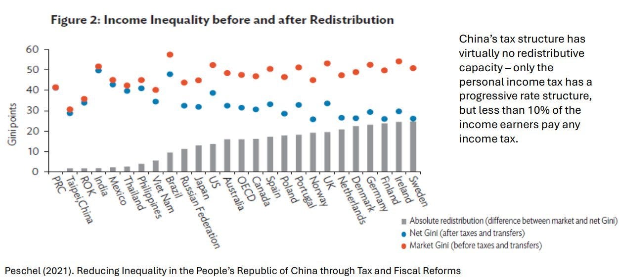 It’s funny to me that leftists internationally fantasize about China when inequality there is higher than even in the United States In fact China’s tax and transfer system has virtually no redistributive effect.